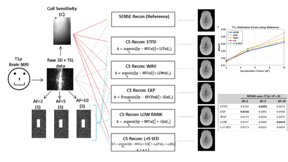 In this project 5 compressed sensing algorithms were tested for acceleration factors (2, 5, 10) for their ability to reconstruct quantitative brain maps compared to a fully sampled reference.